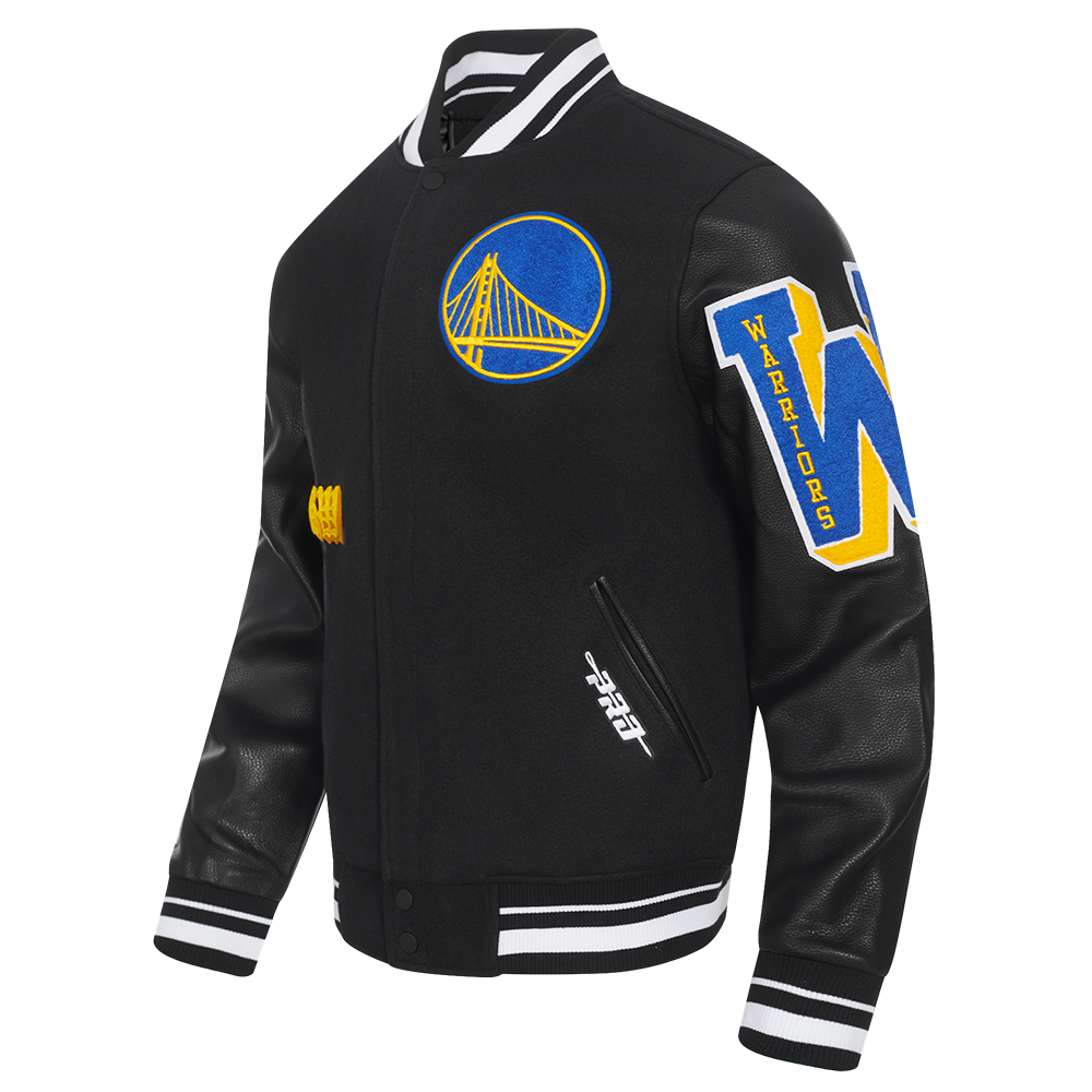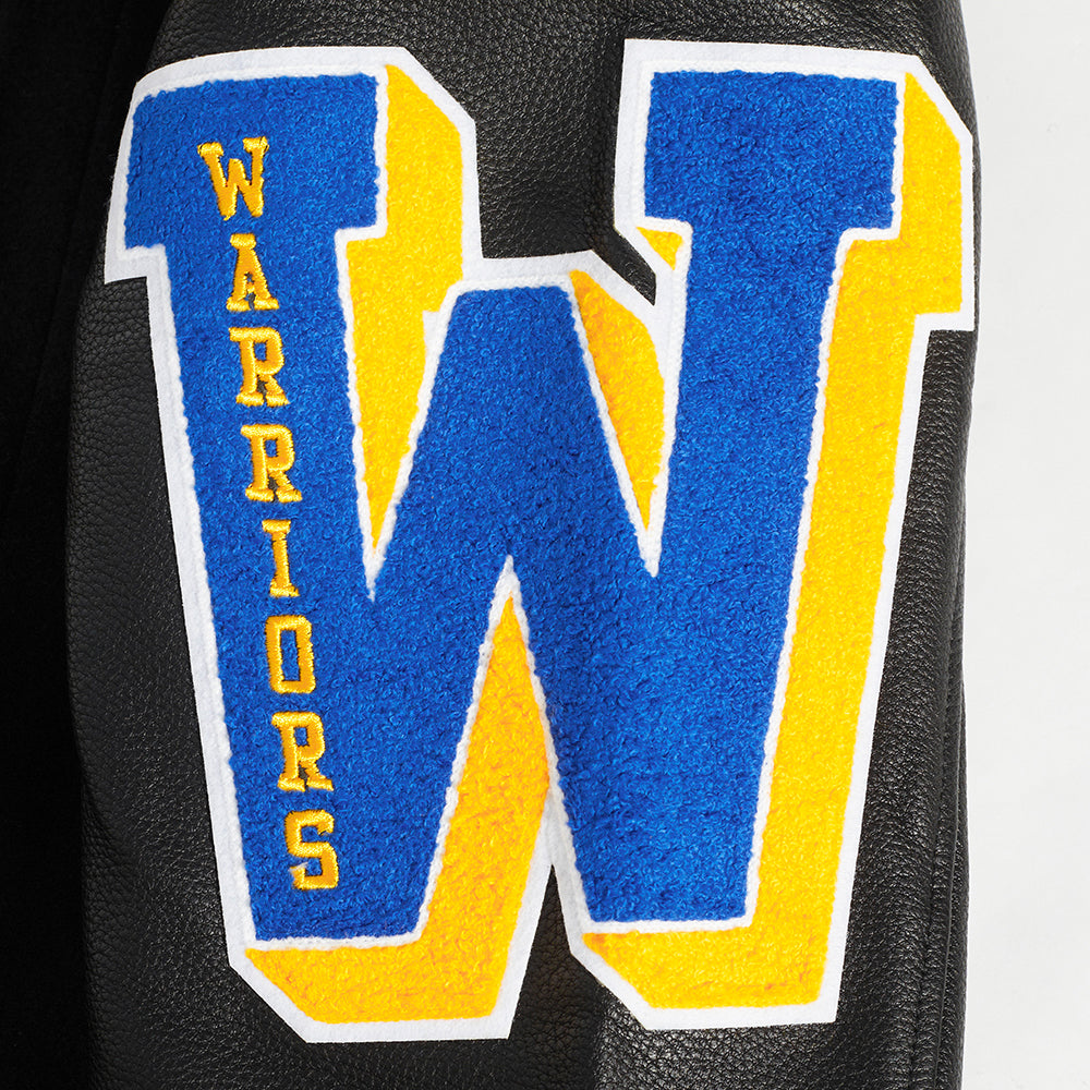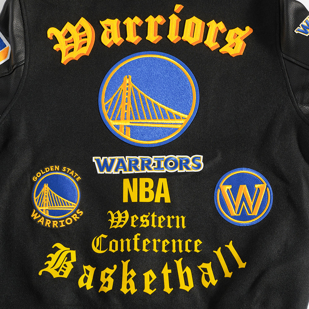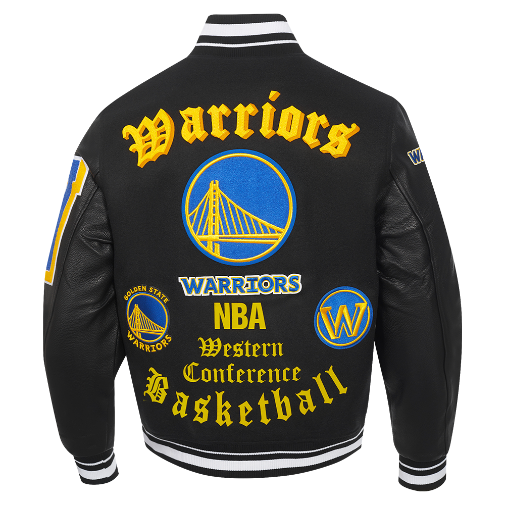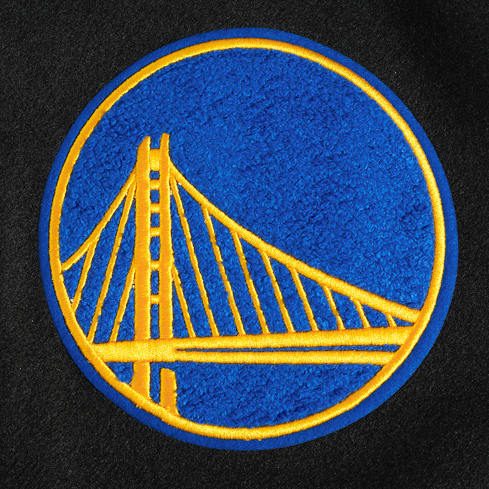 NBA GOLDEN STATE WARRIORS OLD ENGLISH MEN'S RIB WOOL VARSITY JACKET (BLACK)