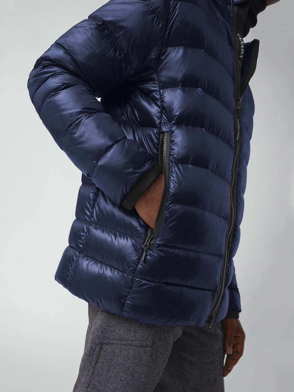 The in Atlantic Navy is a lightweight and packable built for everyday wear. This has down fill, reflective hood detailing and two zip pockets for secure storage��just what shoppers expect from a canada goose lodge hoody or technical crofton design.