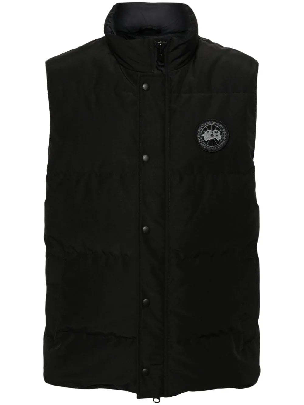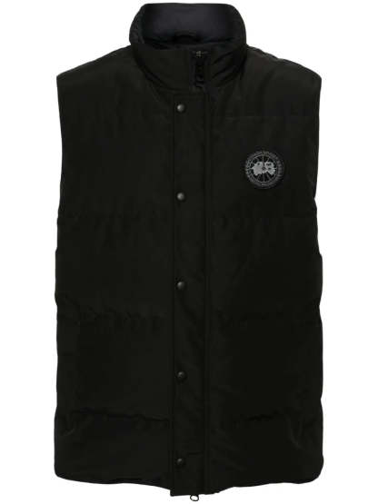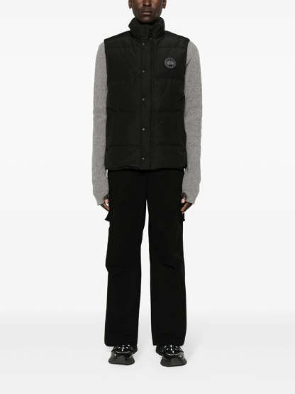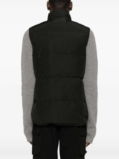 Stay warm with this offering: the Black with quilted shell and down & feather fill. This features snap-button front, dual zip closure, chest logo patch, stand collar, sleeveless design and two secure side flap pockets. Sleek straight hem makes this ideal layering.