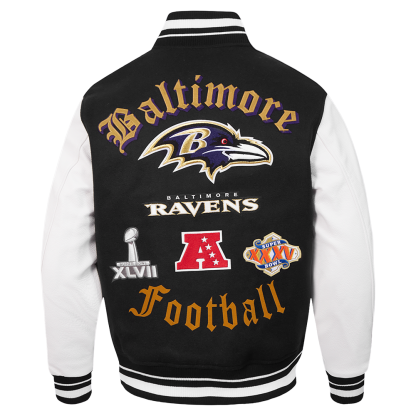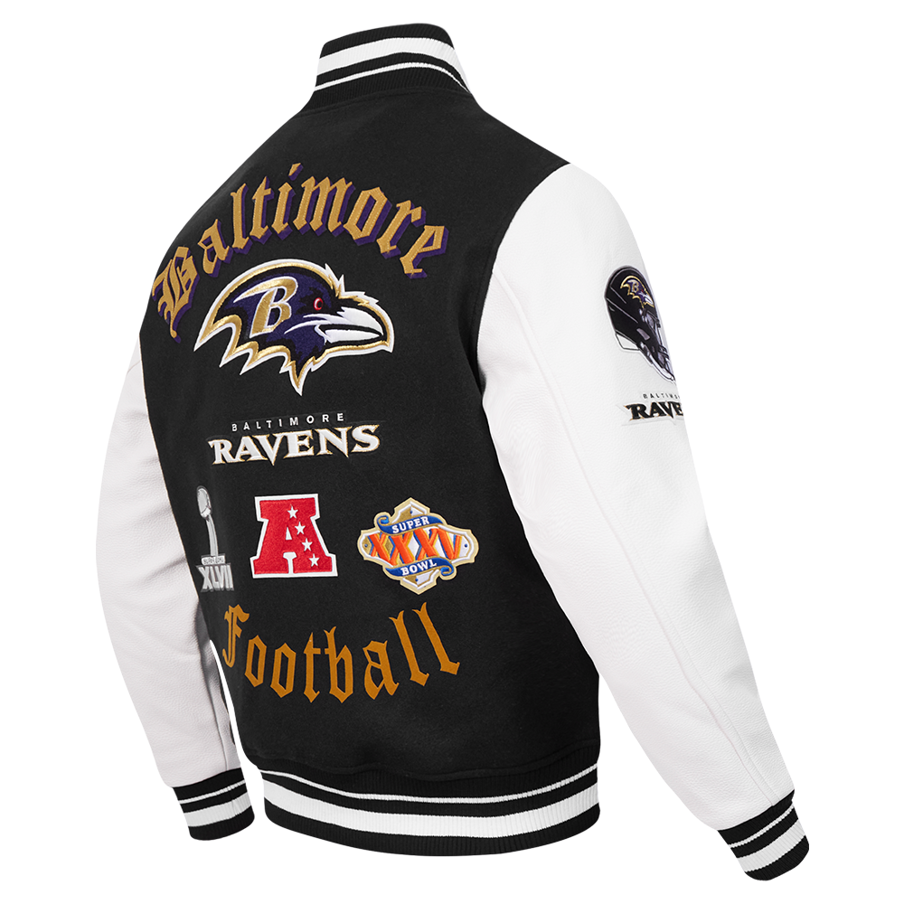 The Pro Standard Premium NFL Baltimore Ravens Old English Men's Rib Wool Varsity Jacket (Black/White)