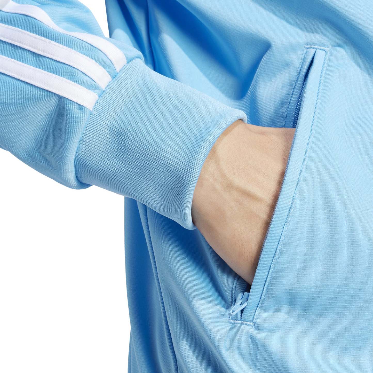 - Long-sleeved, track-style jacket.
