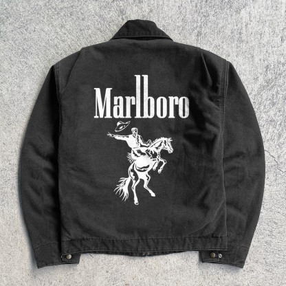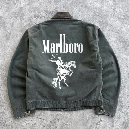 Letters Knight Printed Long Sleeve Zipper Multi-Pocket Jacket