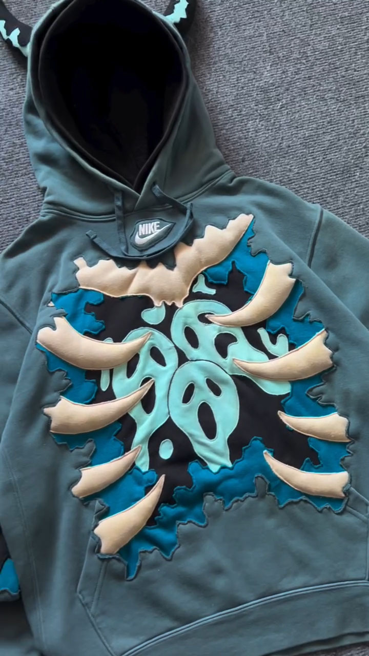 Little Devil 3D Color-Block Skull Hoodie