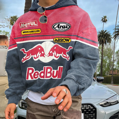 Men's Outdoor Casual Graphic Print Zipper Collar Racing Print Sweatshirt