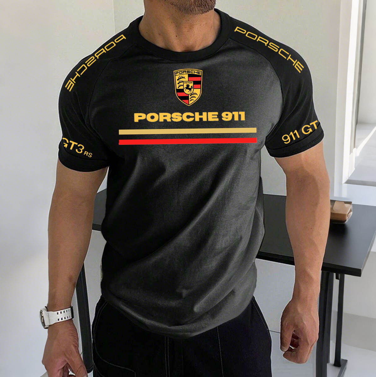Men's Racing Logo Print Contrast Color Short Sleeve T-Shirt