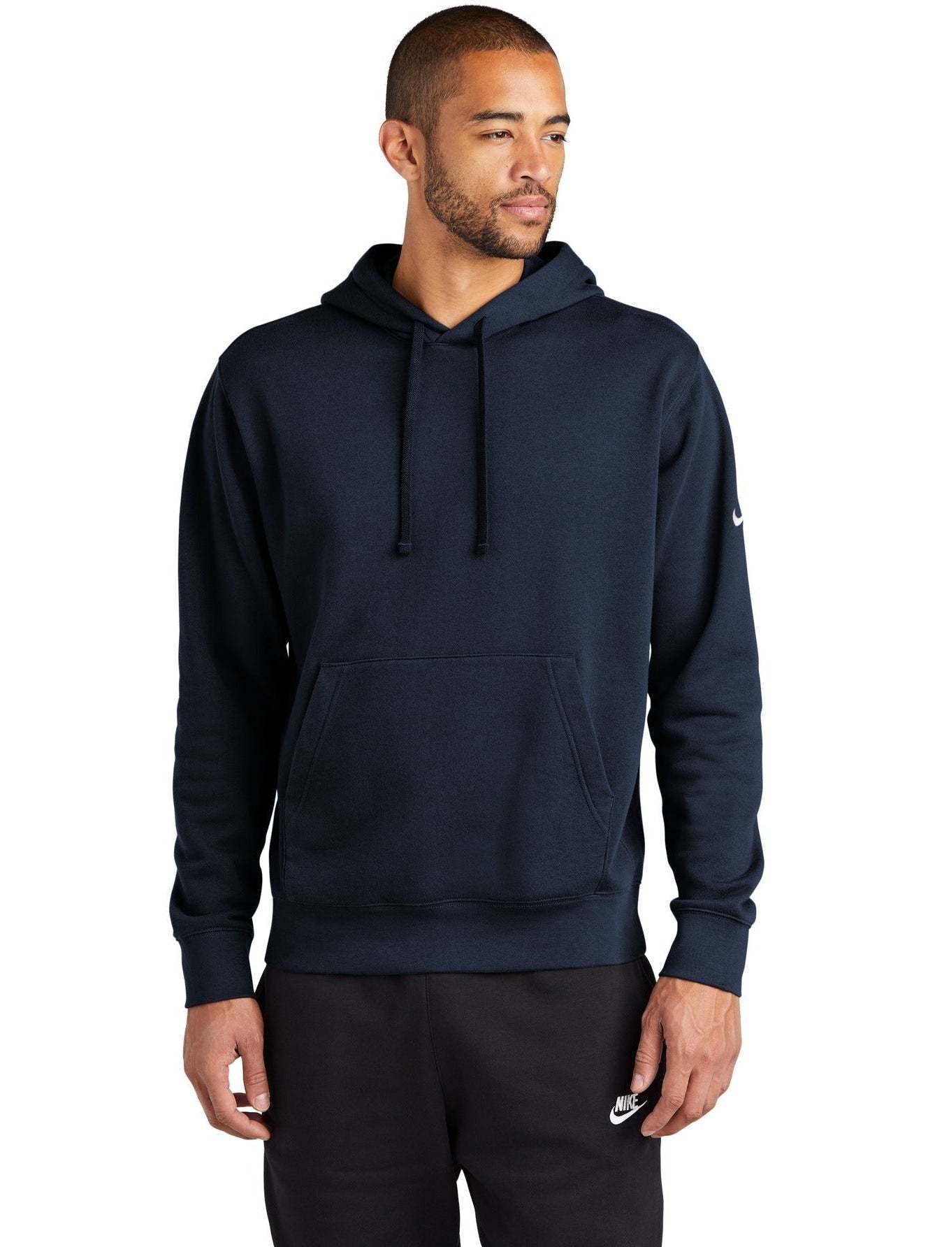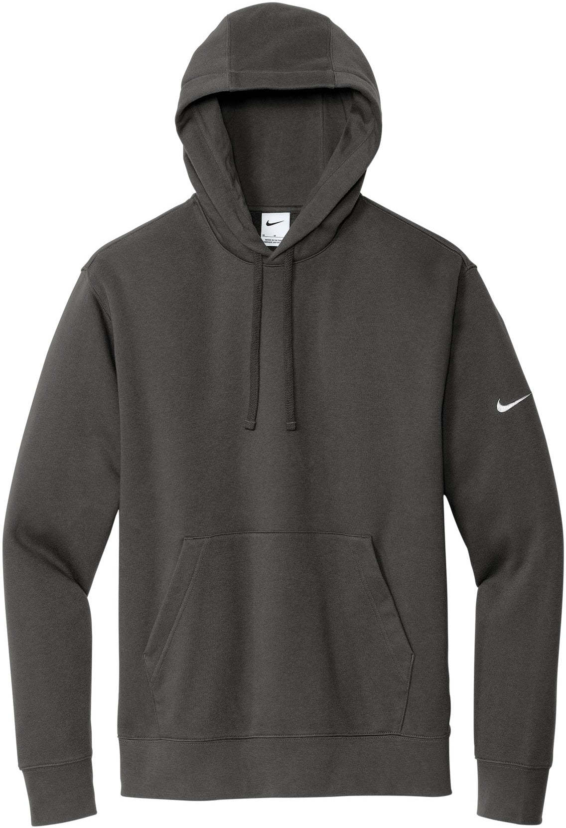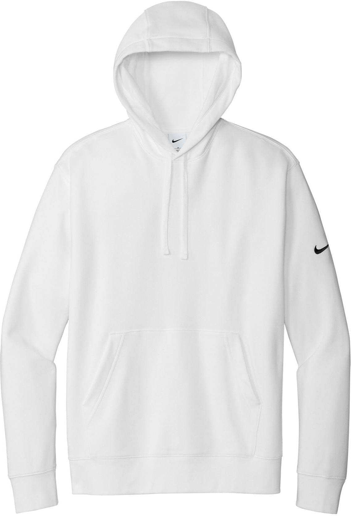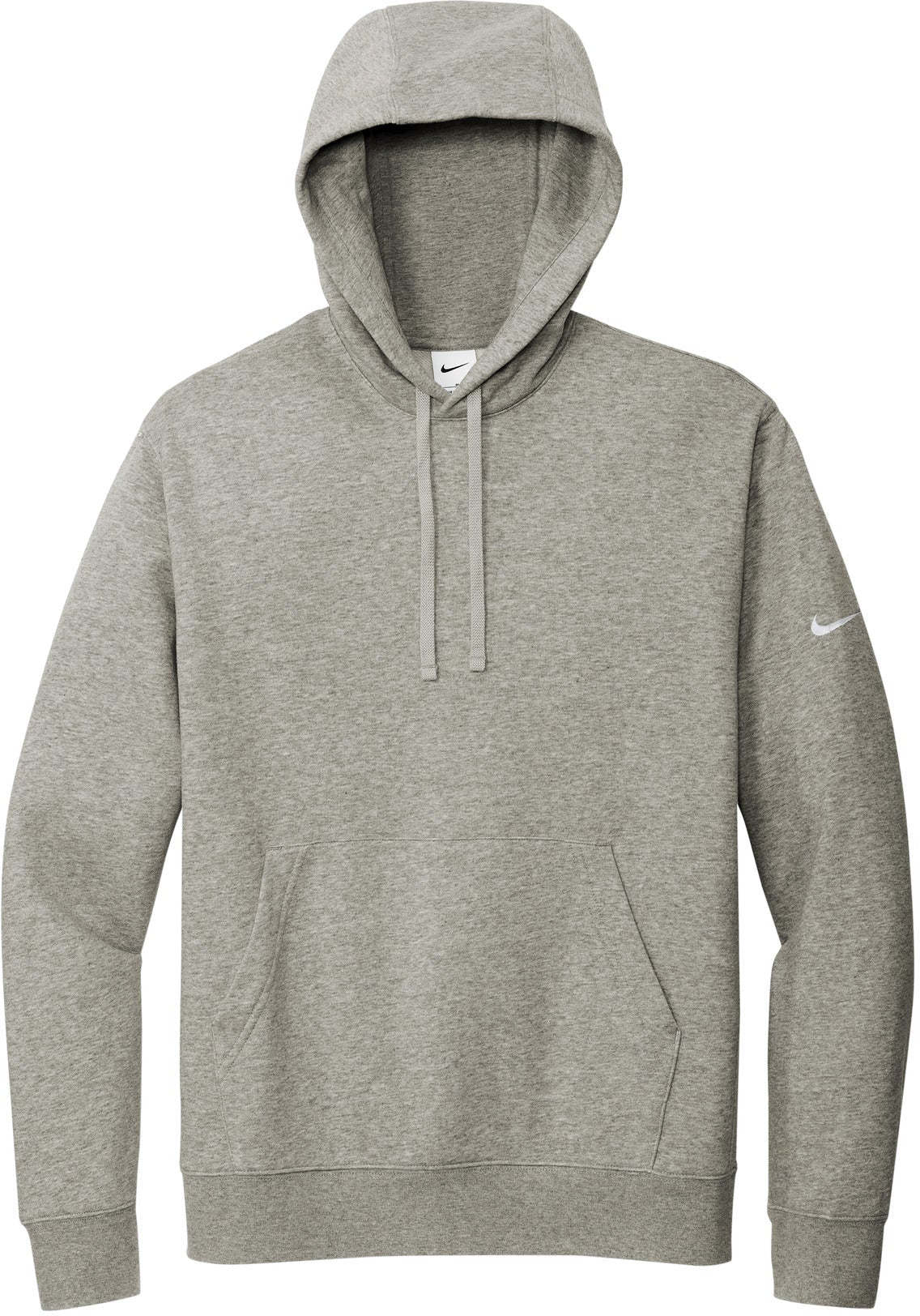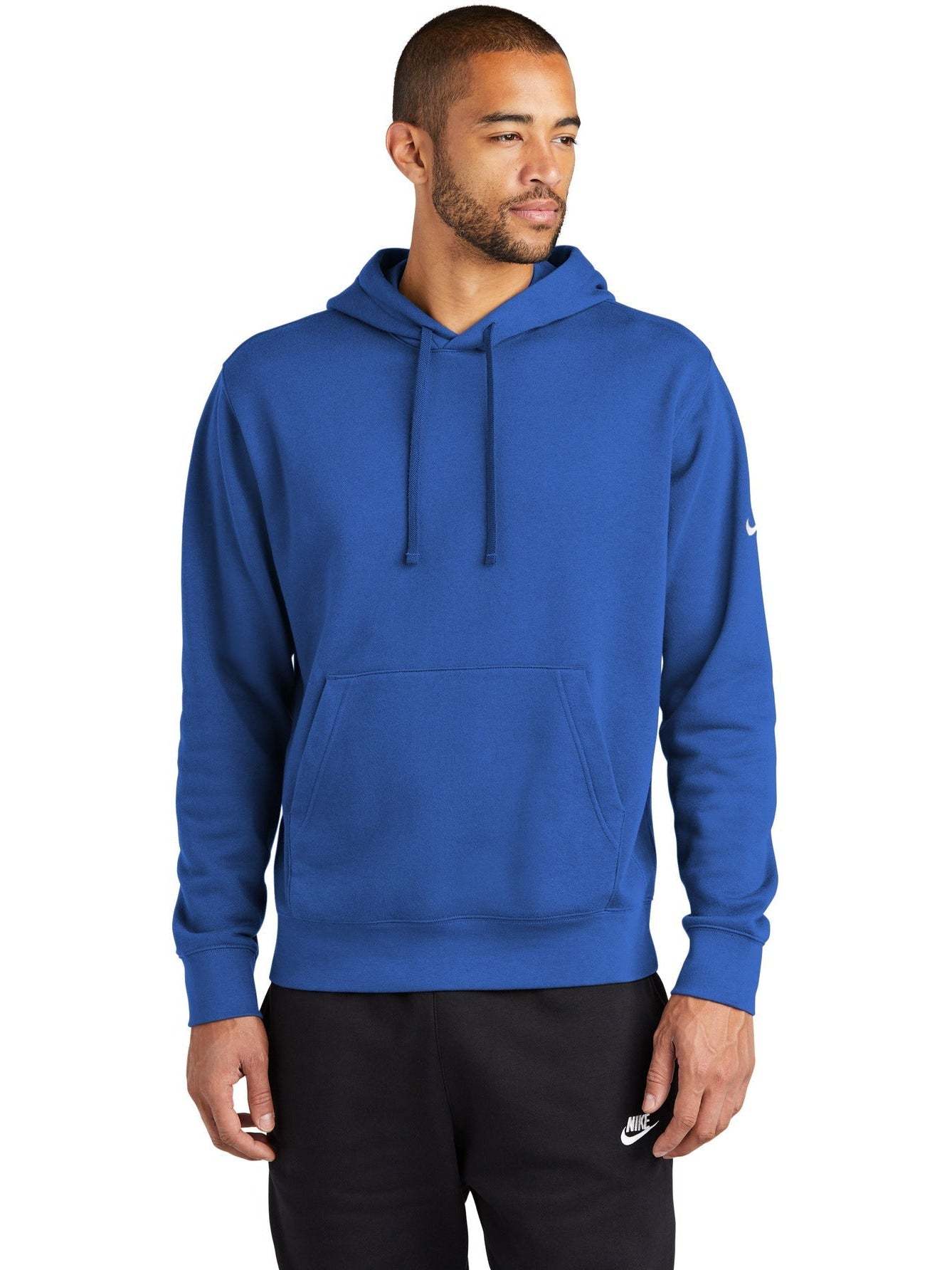 The NIKE Club Fleece Sleeve Swoosh Pullover Hoodie is a perfect combination of classic style and comfort. Made from a soft and cozy blend of 8.2-ounce cotton, polyester, and organic cotton, this hoodie is both comfortable and durable. The jersey-lined, three-panel hood with dyed-to-match drawcords and front pouch pocket offer added warmth and functionality. The rib knit cuffs and hem provide a snug fit, and the contrast Swoosh logo embroidered on the left sleeve adds a touch of style. Ideal for everyday wear, this hoodie is the perfect addition to any wardrobe. And with your custom logo embroidery, this hoodie can be transformed into a unique and personalized item.