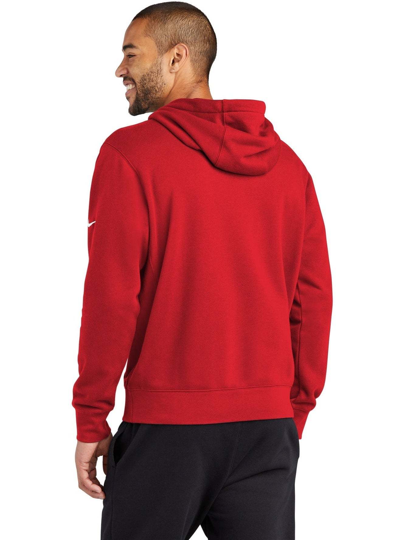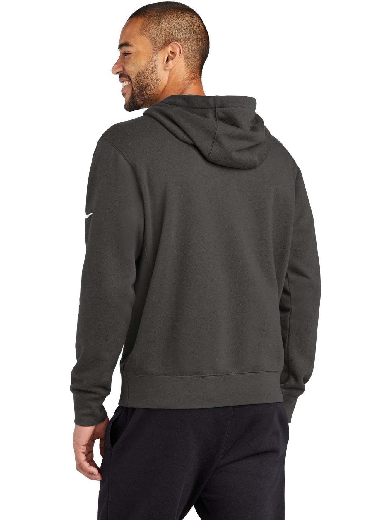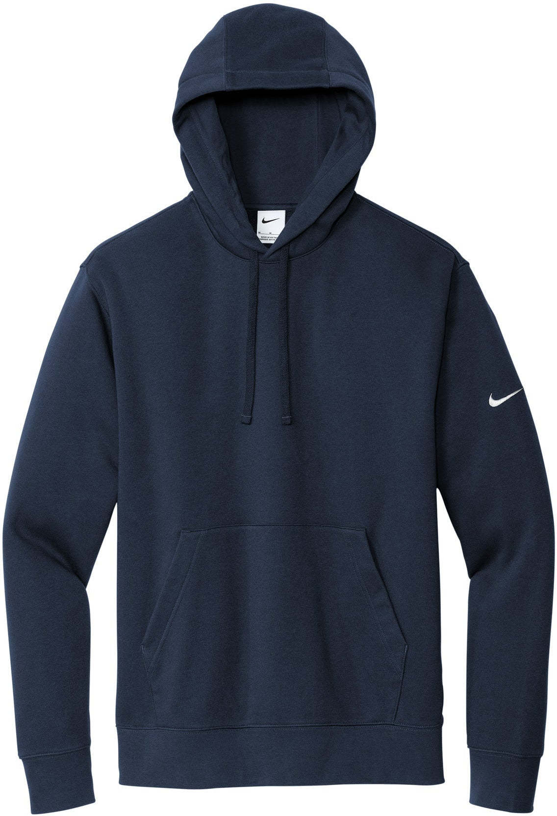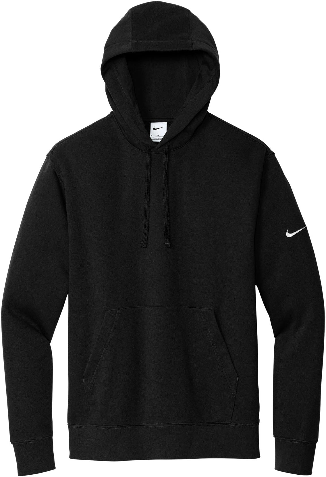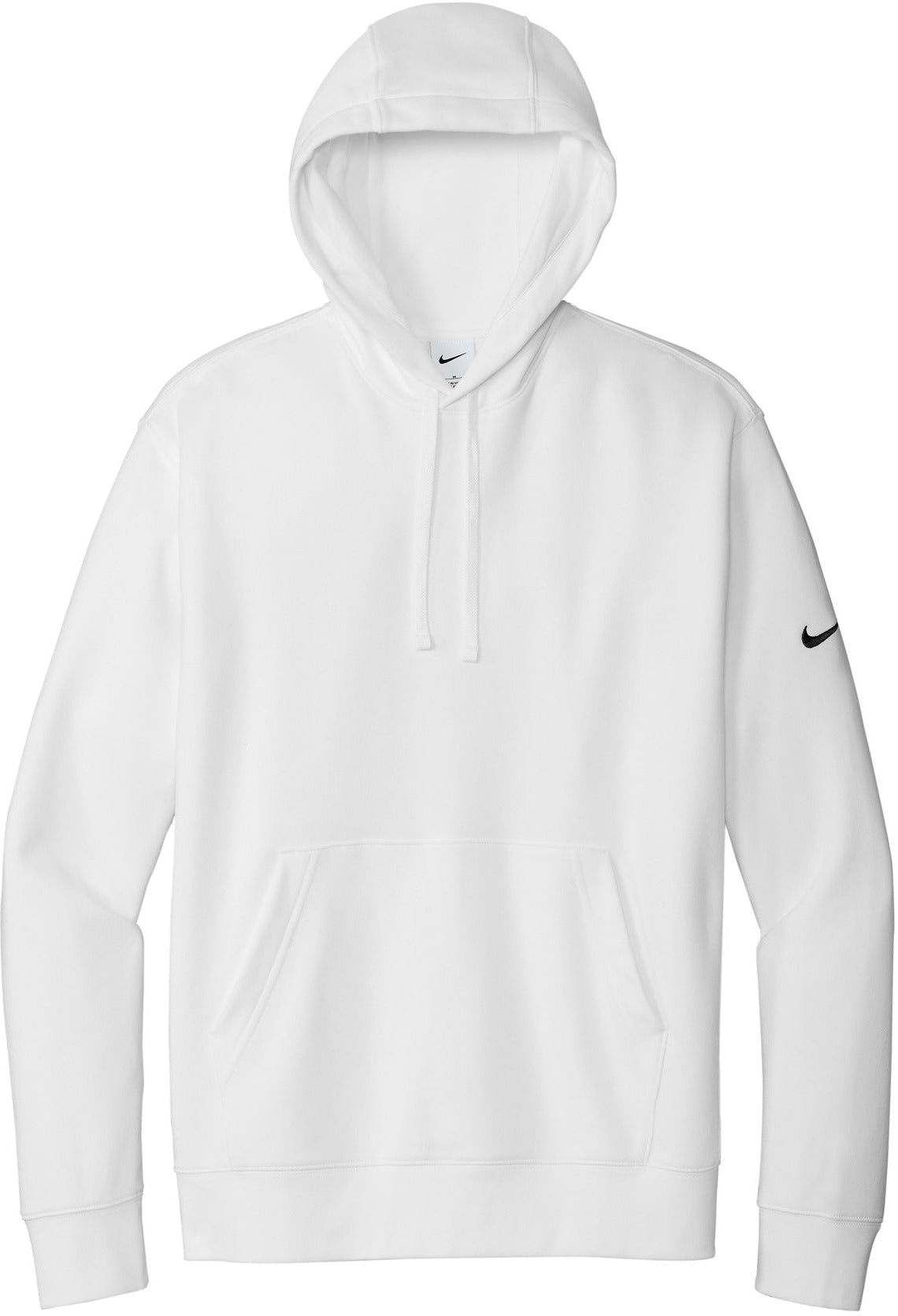 The NIKE Club Fleece Sleeve Swoosh Pullover Hoodie is a perfect combination of classic style and comfort. Made from a soft and cozy blend of 8.2-ounce cotton, polyester, and organic cotton, this hoodie is both comfortable and durable. The jersey-lined, three-panel hood with dyed-to-match drawcords and front pouch pocket offer added warmth and functionality. The rib knit cuffs and hem provide a snug fit, and the contrast Swoosh logo embroidered on the left sleeve adds a touch of style. Ideal for everyday wear, this hoodie is the perfect addition to any wardrobe. And with your custom logo embroidery, this hoodie can be transformed into a unique and personalized item.