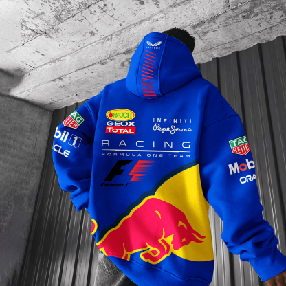 Oversize File Racing Graphic Print Hoodie