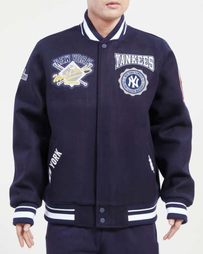 PRO STANDARD NEW YORK YANKEES CREST EMBLEM RIB WOOL VARSITY JACKET (MIDNIGHT NAVY)