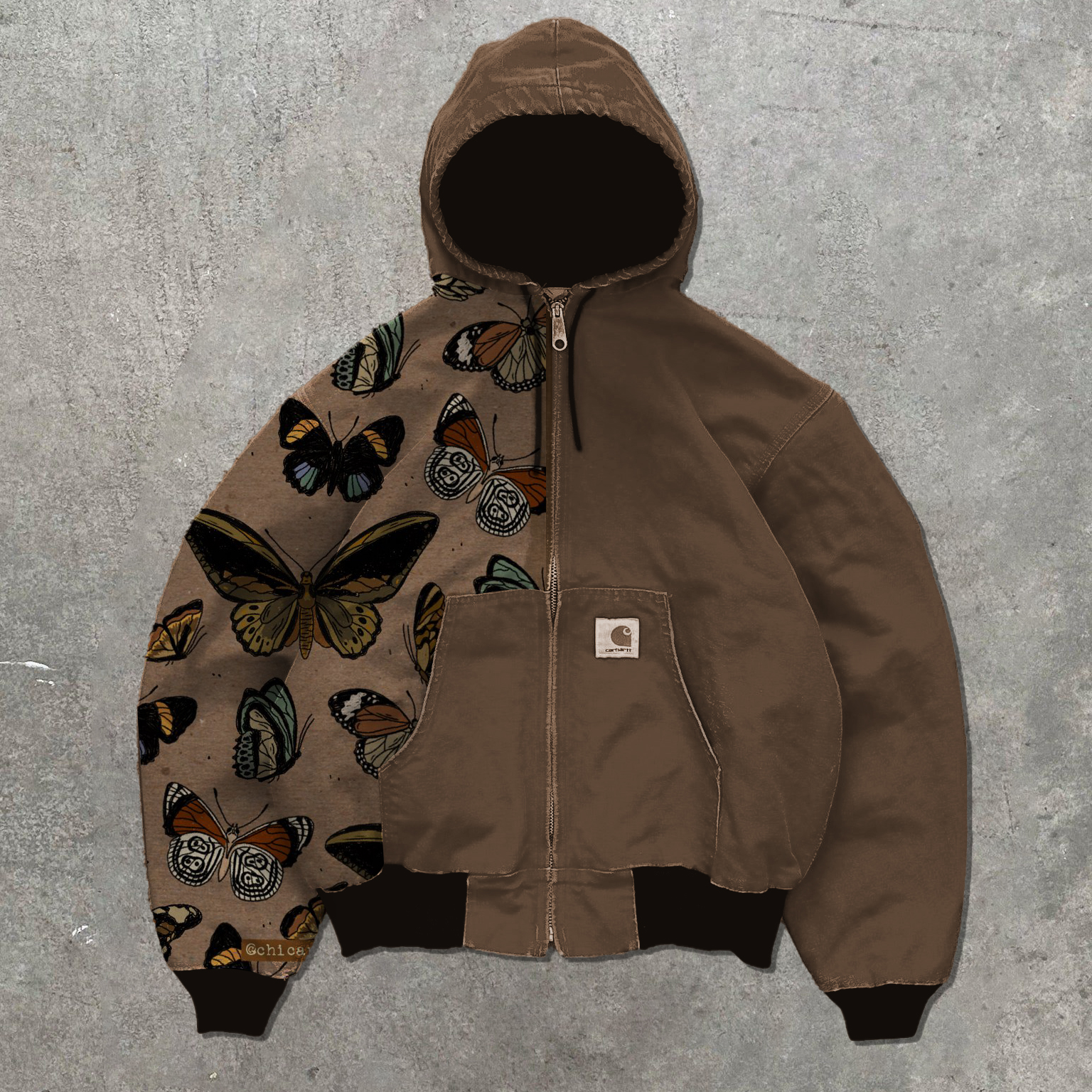 Retro Butterfly Contrast Long Sleeve Zip-Up Jacket