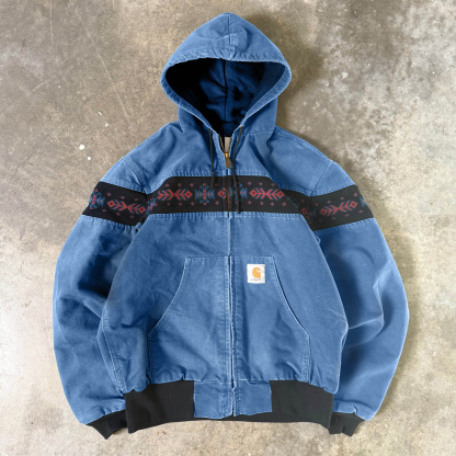 Retro ethnic pattern contrast zip-up anorak