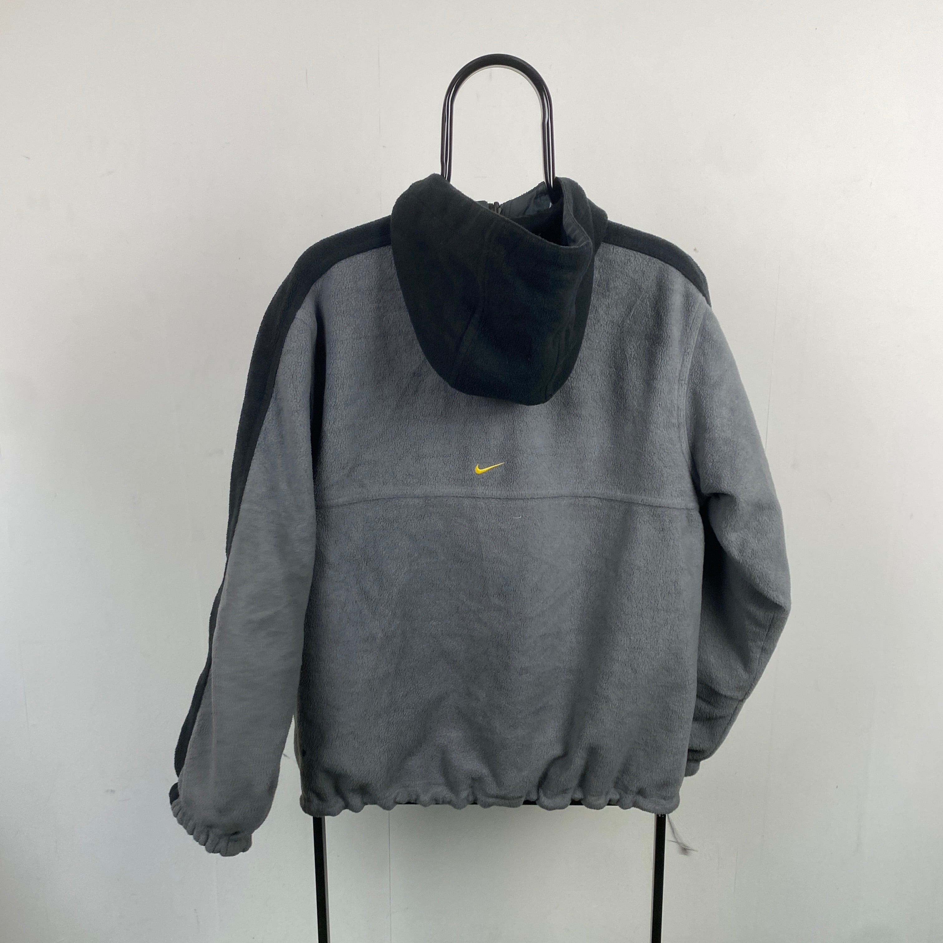 2000'sTn Hex Reversible Fleece Coat Jacket Black Grey