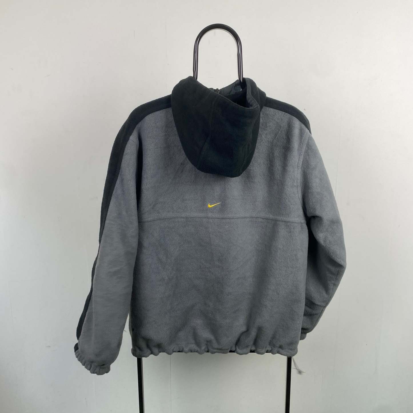 Switch your look in seconds. One side features soft fleece for warmth and comfort, while the other sports a smooth nylon shell for that retro techwear feel.
