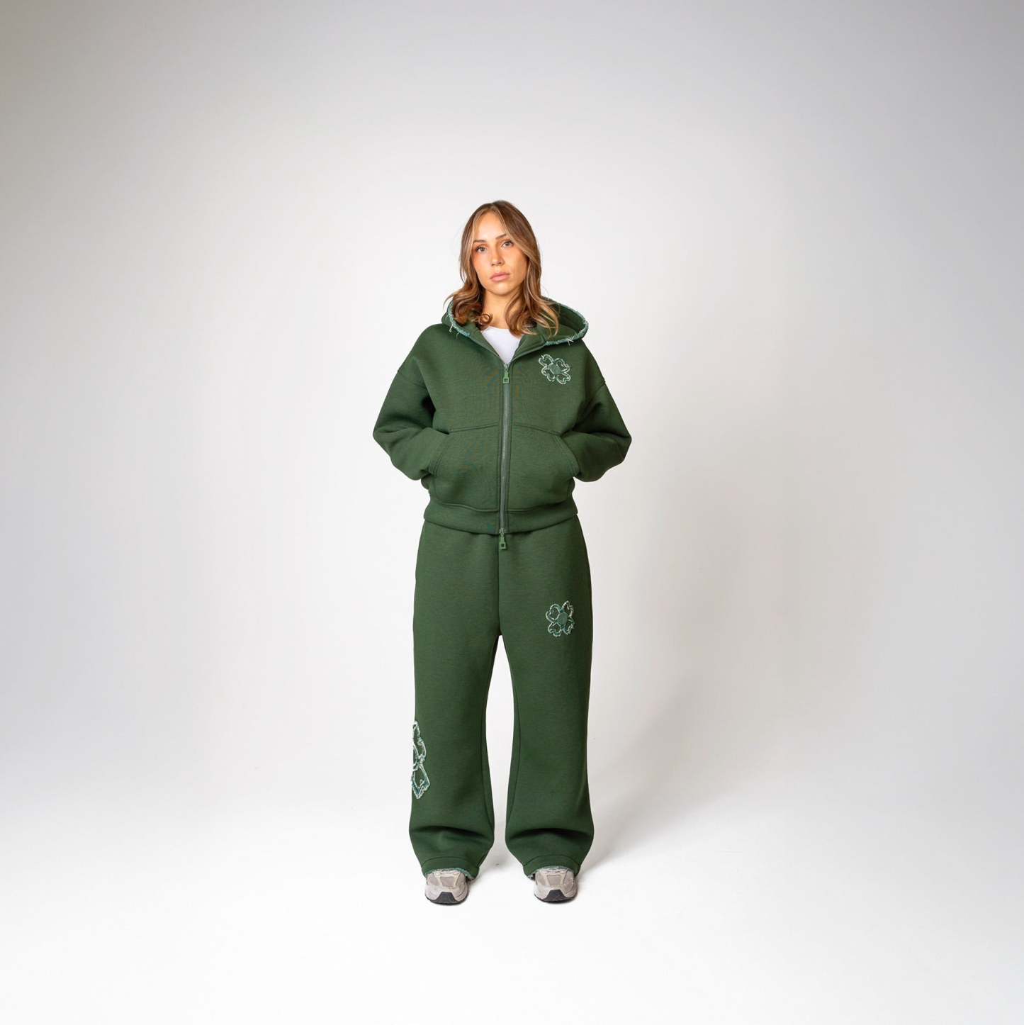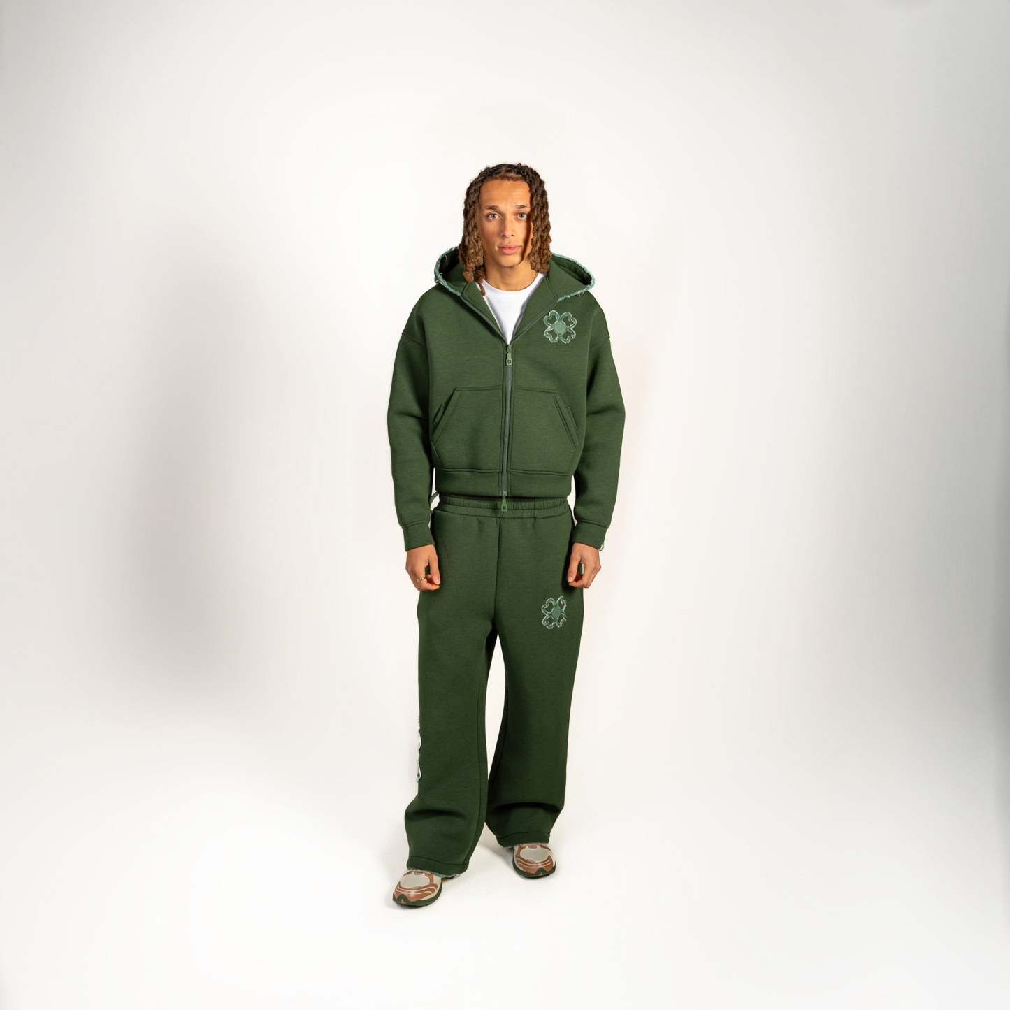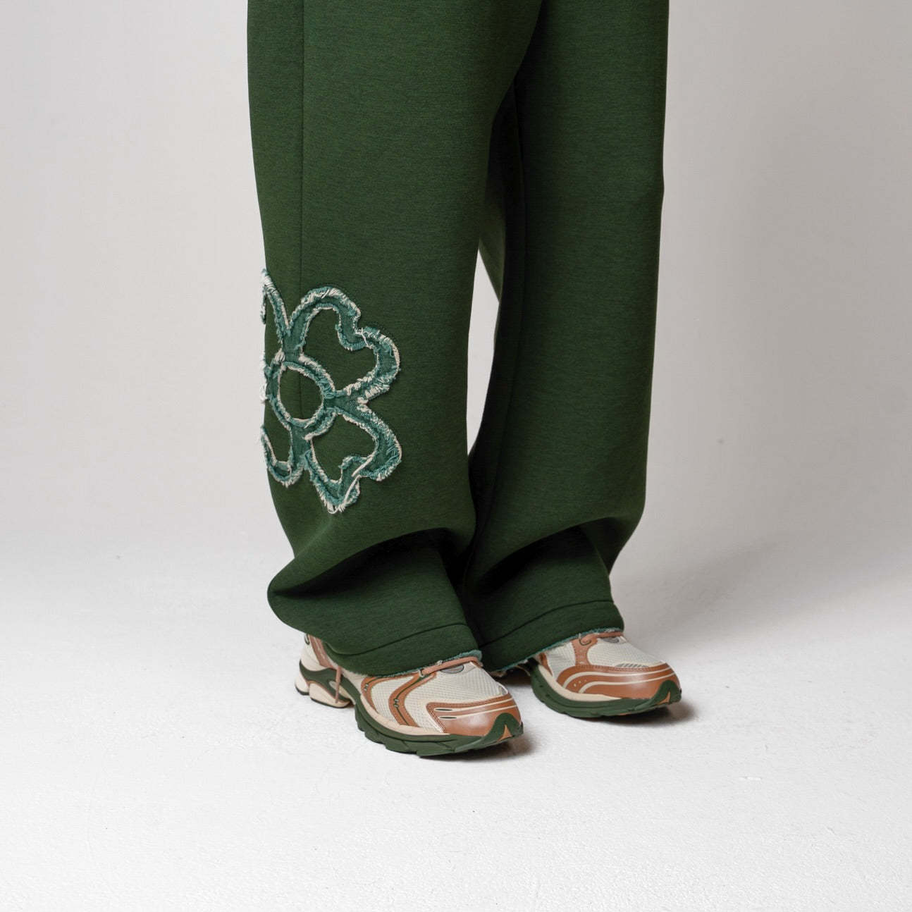 • Détails : logo brodé sous la poche droite, finitions effilées aux extrémités, trèfle signature cousu en bas de jambe.
