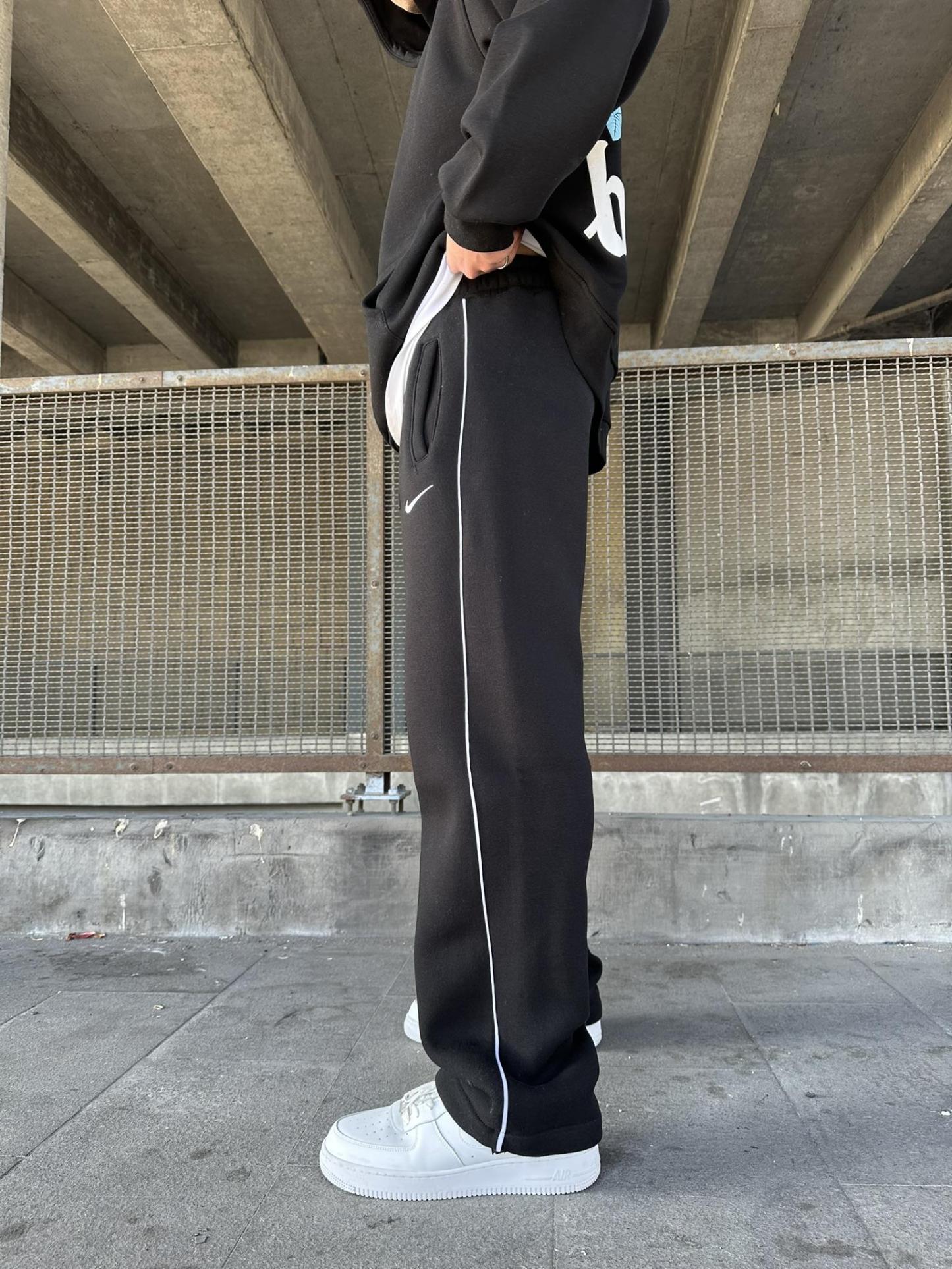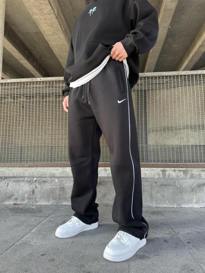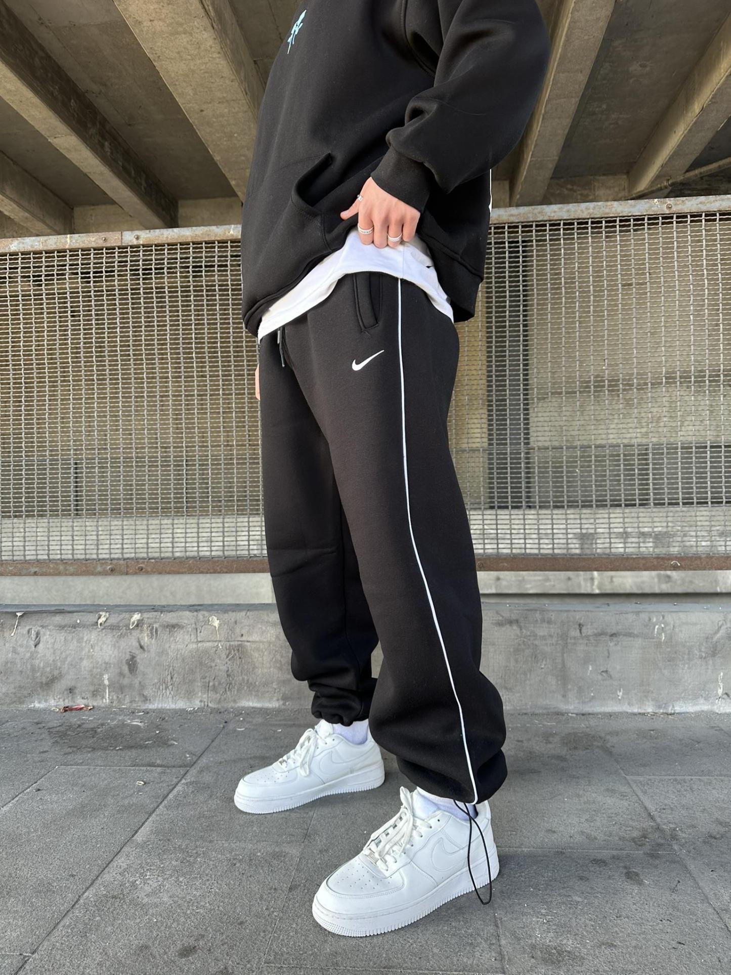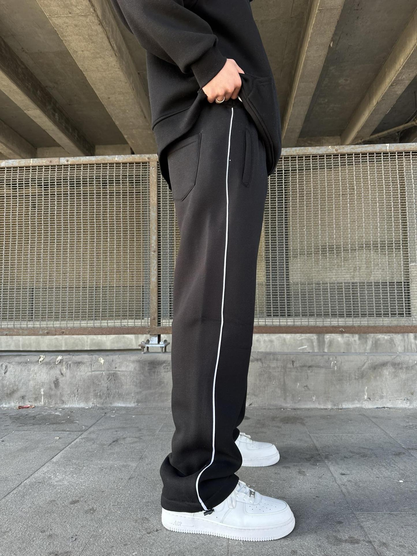 Loose-Fit Sweatpants with Embroidered Stripes and Elastic Drawstring Cuffs